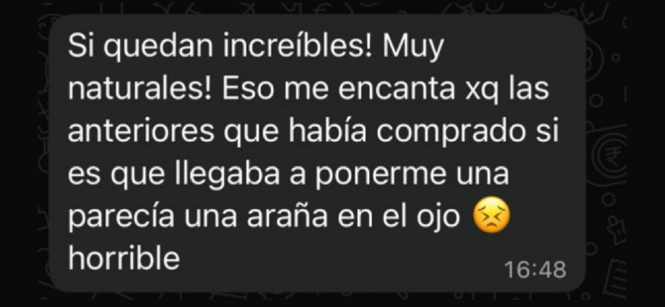 Nuestras pestañas son súper livianas porque están hechas con fibras sintéticas flexibles y un imán ultra fino. No tironean, no pesan y no molestan ni siquiera después de varias horas de uso. Vas a sentir que no llevás nada puesto.