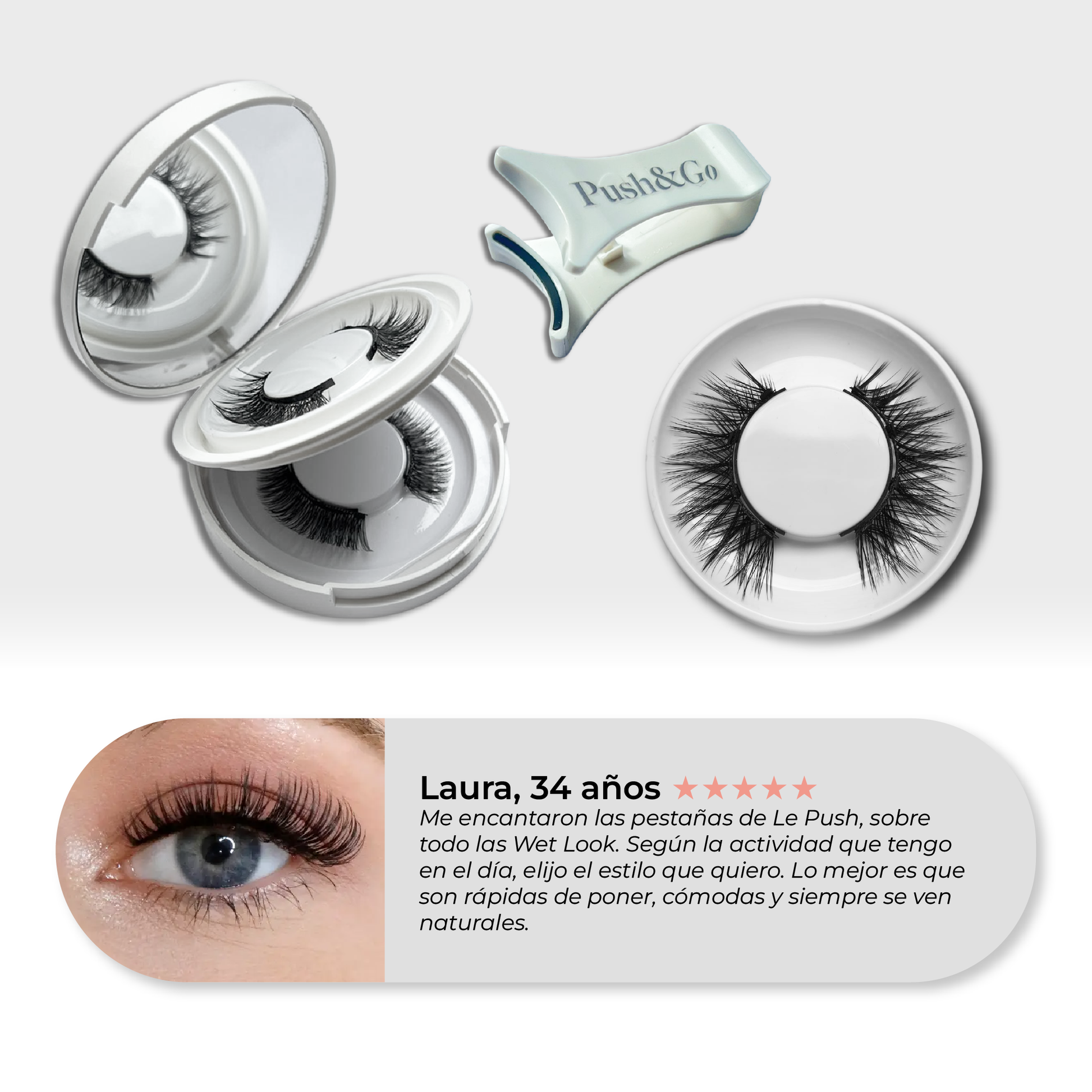 ¡Muy fácil! Con un poco de practica solo colocas las pestañas en las pinzas, luego sobre tu línea natural de petañas, cerras la pinza y el imán hace el resto. No necesitás pegamento ni experiencia previa. En segundos quedás lista.